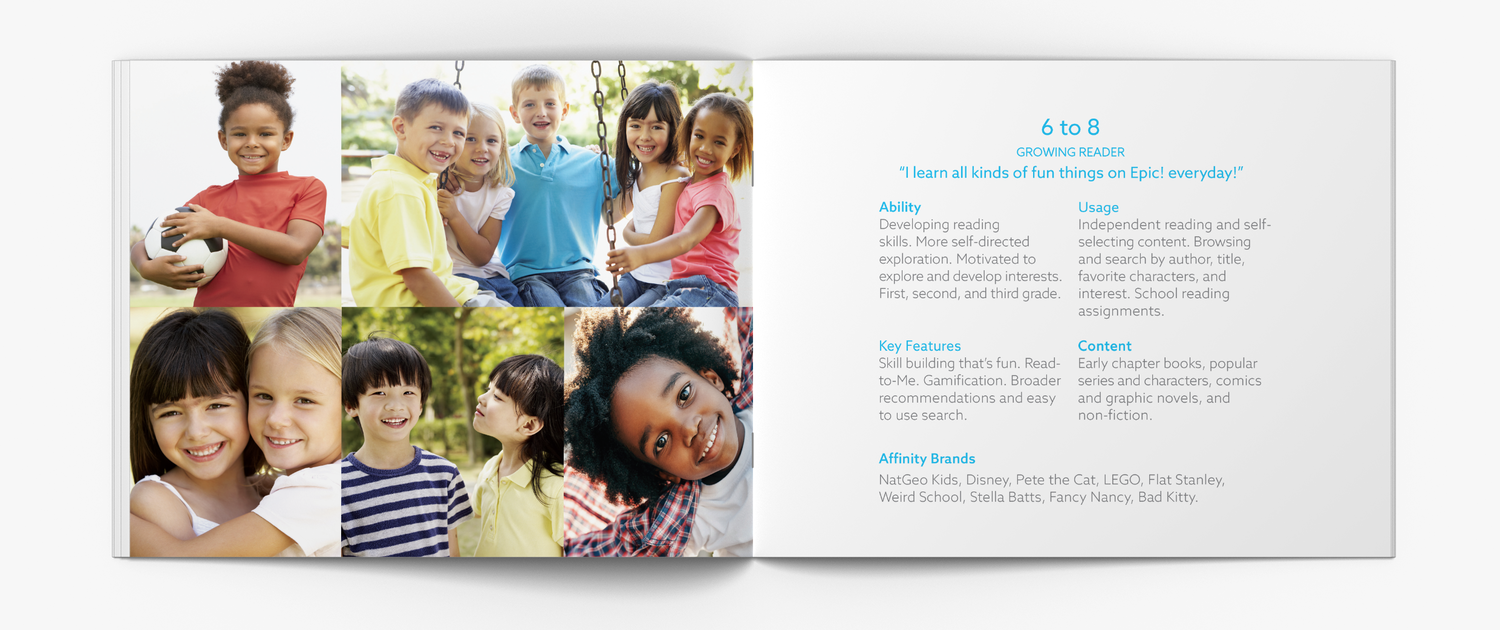 We worked closely with the executive team to create a brand that connects with their audience, communicates Epic!’s unique offering, and was set up to grow and evolve with the company.
